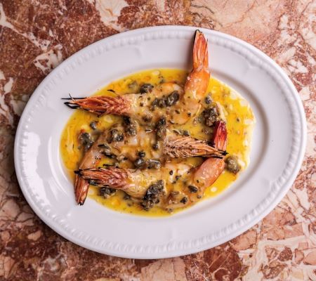 Speaking of which their twist on an old fashioned starts the beverage side of the night off particularly well. Likewise for food, the nicely composed in house pork and duck terrine served with apricot jam, cornichons, seeded mustard and toasted bread is just delightful. In my opinion, a good terrine will always have relevance on a menu, as it demonstrates not only skill, but is fundamentally timeless and brings a sense of joy to the serious diner. We lush things up with the delicious King Prawns, accompanied by a very decadent and well-judged escargot XO sauce. The cylindrically cut fluffy steamed buns are perfect discs for mop up operations, and overall serves as a lovely counterpoint to the previous dish.