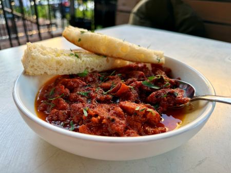 Having done Brunch/Lunch, curiosity drives me to their Dinner offering on Friday and Saturday nights. The Old Fashioned looks a great way to start, and they pass the cocktail (and ice cube) test. Now if you’re an aficionado of old school garlic bread, this is your place. Nosferatu will clearly not be visiting you later after indulging, as they make no apologies for delivering exactly how it should be made (always). If your partner has a problem with it, that’s entirely their issue, as good garlic bread (trust me) is increasingly harder to find. Reviewers often select dishes that have simple pitfalls, or require a deal of technical skill, and fried calamari is the first category. When it arrived I thought it may have been over, but that was not the case, with the texture as noteworthy as the house made garlic aioli. Likewise, the smoky chorizo hotpot served with focaccia, was a spicy number that dialed up the volume, and was a nice contrast.