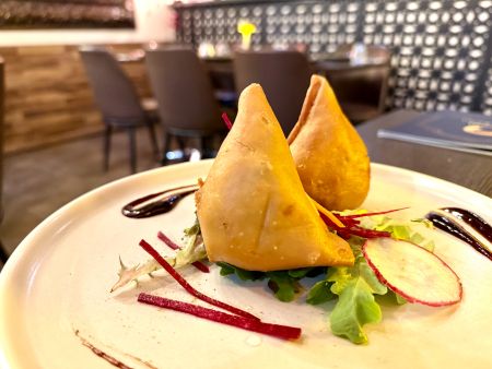 So what to order, we are 2 pax, which makes the banquets a must try for another time. We start with samosa, a non-negotiable for a pass mark, and these are filled with a spicy potato and pea mixture, served with tamarind chutney, and they certainly do not disappoint. The crispy pastry on which it either succeeds or fails, astutely hits the mark and we are off to a good start. I should mention the papadums that are made to order are irresistible, especially with the vibrant mint chutney. The same applies to any of the breads or naans, and likewise with the array of condiments. We follow up with the meat platter for two, a generous and more-ish combination of tender chicken tikka, flavoursome lamb kebabs, lamb chops (why not) and tandoori fish. Normally seating me with a view of the kitchen occasionally has unintended consequences, however all I observe tonight is a purposeful duty of care and it shows on the plate.
