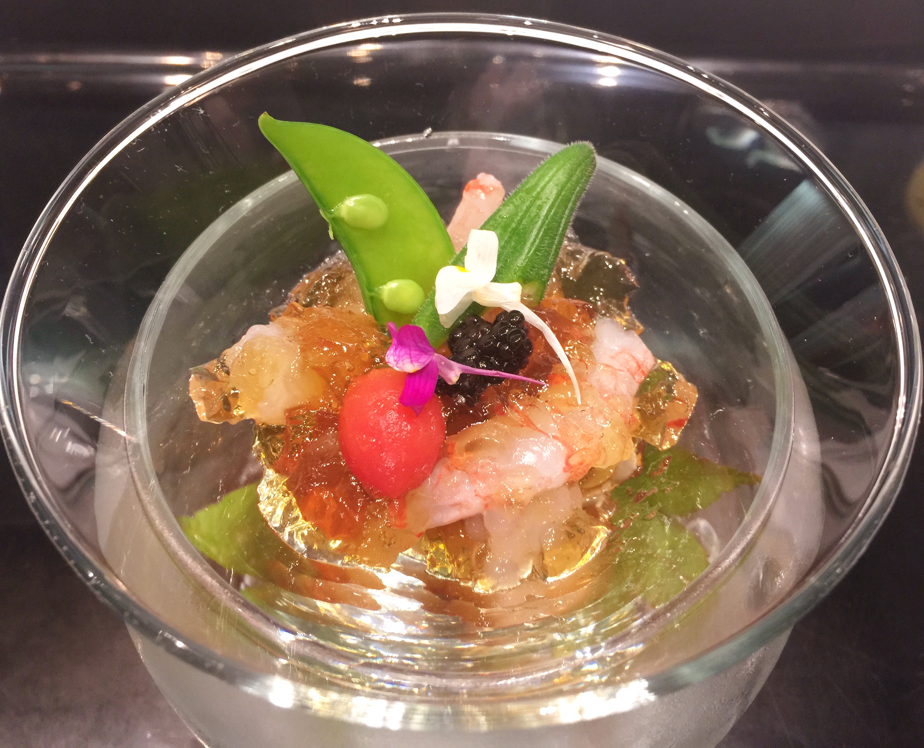 The occasion of a private dinner, to showcase and share the joy of Japanese cuisine, provided a lovely and relaxed environment in which to exchange conversation on the synergy between our two cultures, and one could not be more impressed by the genuine depth of the hospitality shown to the guests. The next course, delicate lobster, from simmering with Japanese Pepper tree leaves, and served with taro and Japanese mustard spinach was very well executed.
