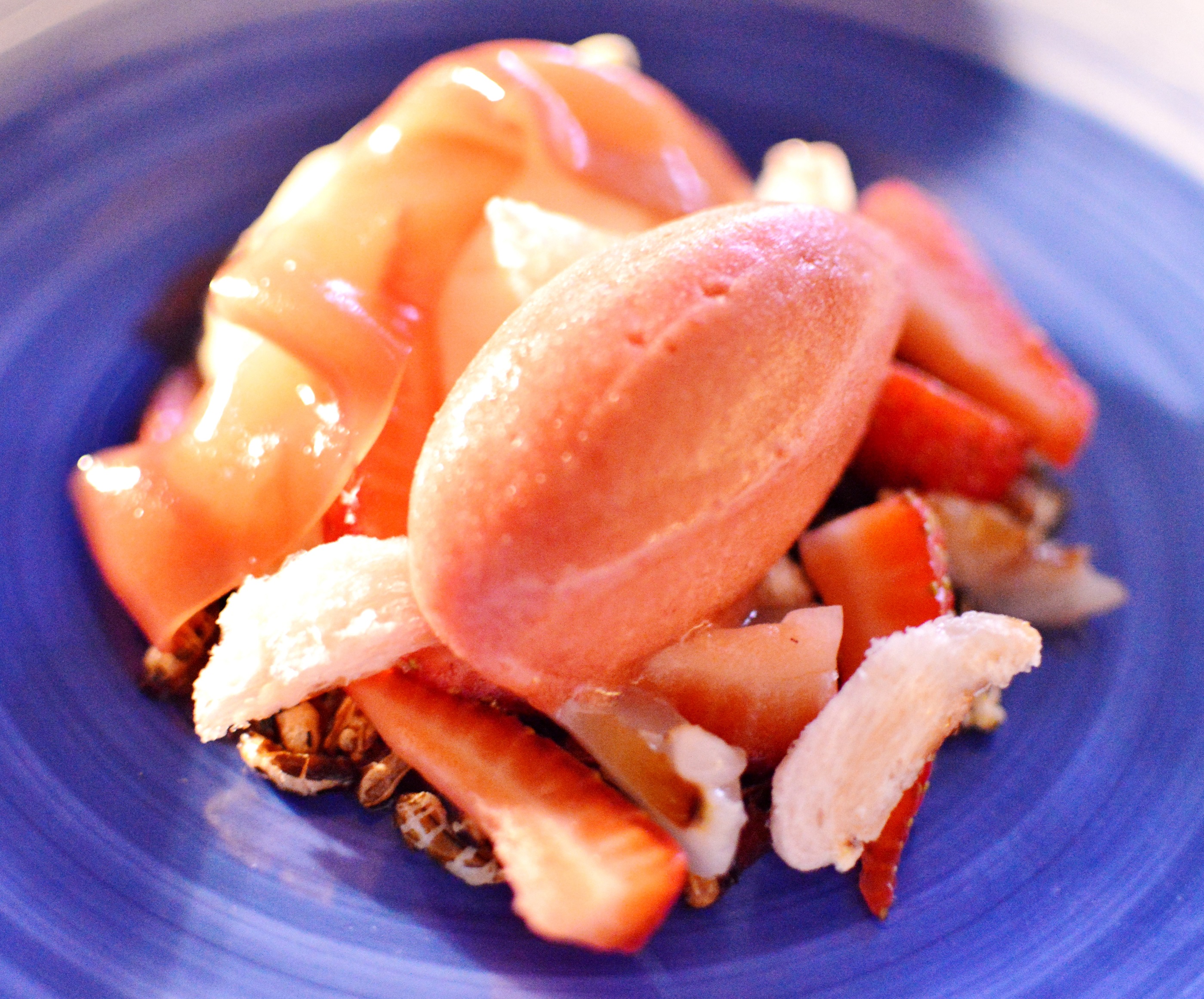 Milly Hill lamb rump with sheep’s yoghurt, cumin, okra and sprouted lentils is a light-hearted modern take on a British style curry, but produce of this quality, cooked so innovatively is not leaving the country on my shift! Likewise, the Grasslands organic 28 day dry aged grass-fed rib eye, is without peer, and in my opinion is the best value for this level of quality in town. Sweet set vanilla tofu with lychees, wild rice, strawberry and rose jelly cleanses the palate beautifully.
