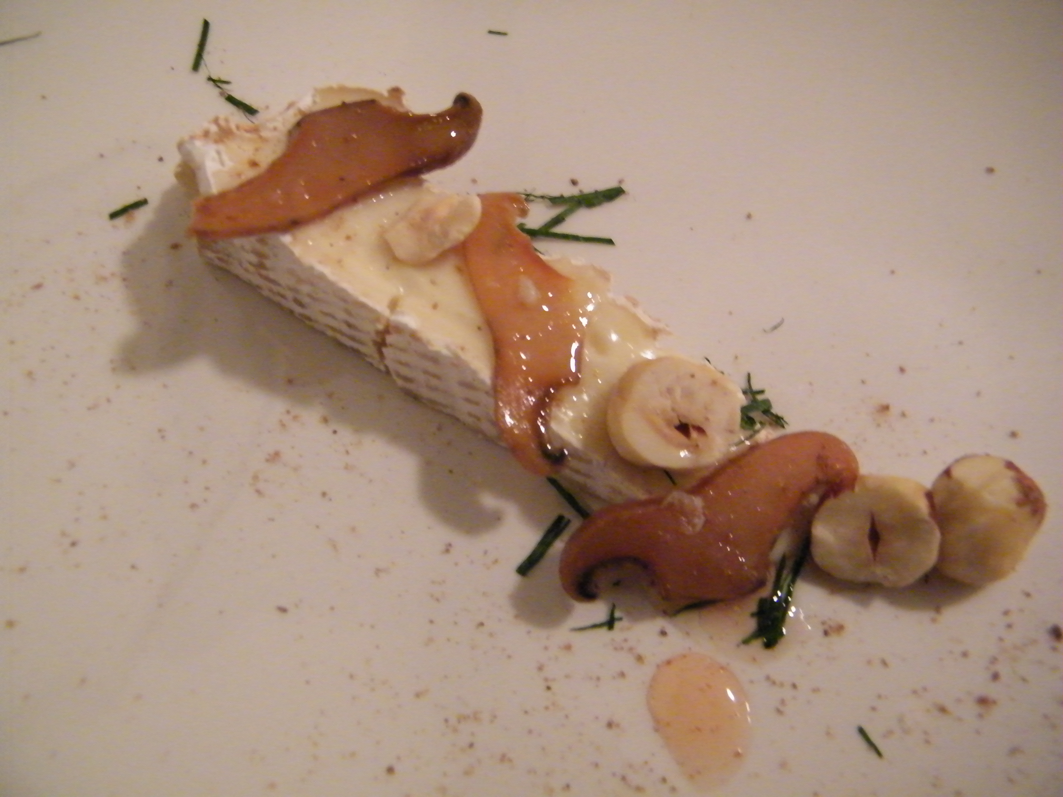 The optional cheese course, Le Conquerant camembert (extra $10 or $18 with wine match), is presented elegantly, with a garnish of pickled wild mushrooms and hazelnuts. The touch that really sets the course off however is the fascinating French Salamandre Eau de Coing Quince liqueur (30ml pour), albeit obvious in a matching sense, is a brilliant choice that has me pondering why it is not done elsewhere, an idea which I intend to pinch nonetheless. The local Wooragee strawberries, with their intense concentrated flavour are astonishing; and with roasted spiced pears, caramelised white chocolate ice cream and vincotto jelly forms a simple, harmonious dessert, with just the right balance of sweetness, and a nice note to finish on.