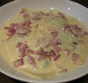 warmly hug a peasant or a king on a cold winters day. The ravioli panna e prosciutto ($20), is far better the second time around, with house-made ricotta and spinach packed into the largest ravioli I have seen for quite a while, and there’s plenty of them, with the ham and cream sauce filling even on an empty stomach.