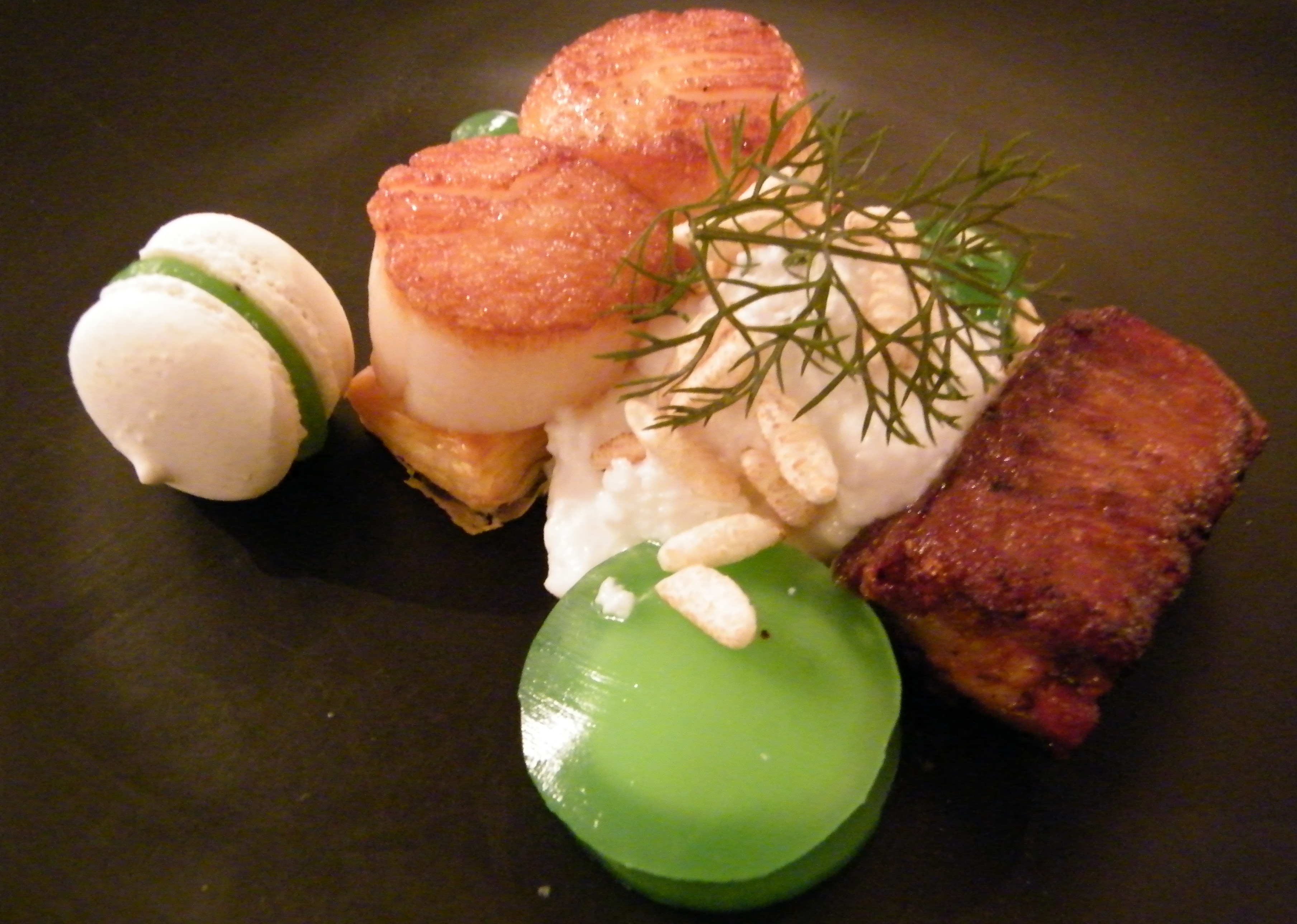 The combination of two textbook seared sea scallops with a prosciutto-wrapped pork jowl ‘is money in the bank’, although I remain unconvinced what the overt sweetness of a Granny Smith apple-flavoured macaron brings to an otherwise very smart dish. Technically, the macaron in isolation is faultless, but the apple gel on this occasion would have sufficed; nonetheless the skill involved is not totally lost on me. The balance in most dishes is brought together by a multiple components in the Modern Australian style, with hints of molecular, rather than this being the overriding direction. Overall, it works in a cohesive manner, with this dish being the exception rather than the rule.