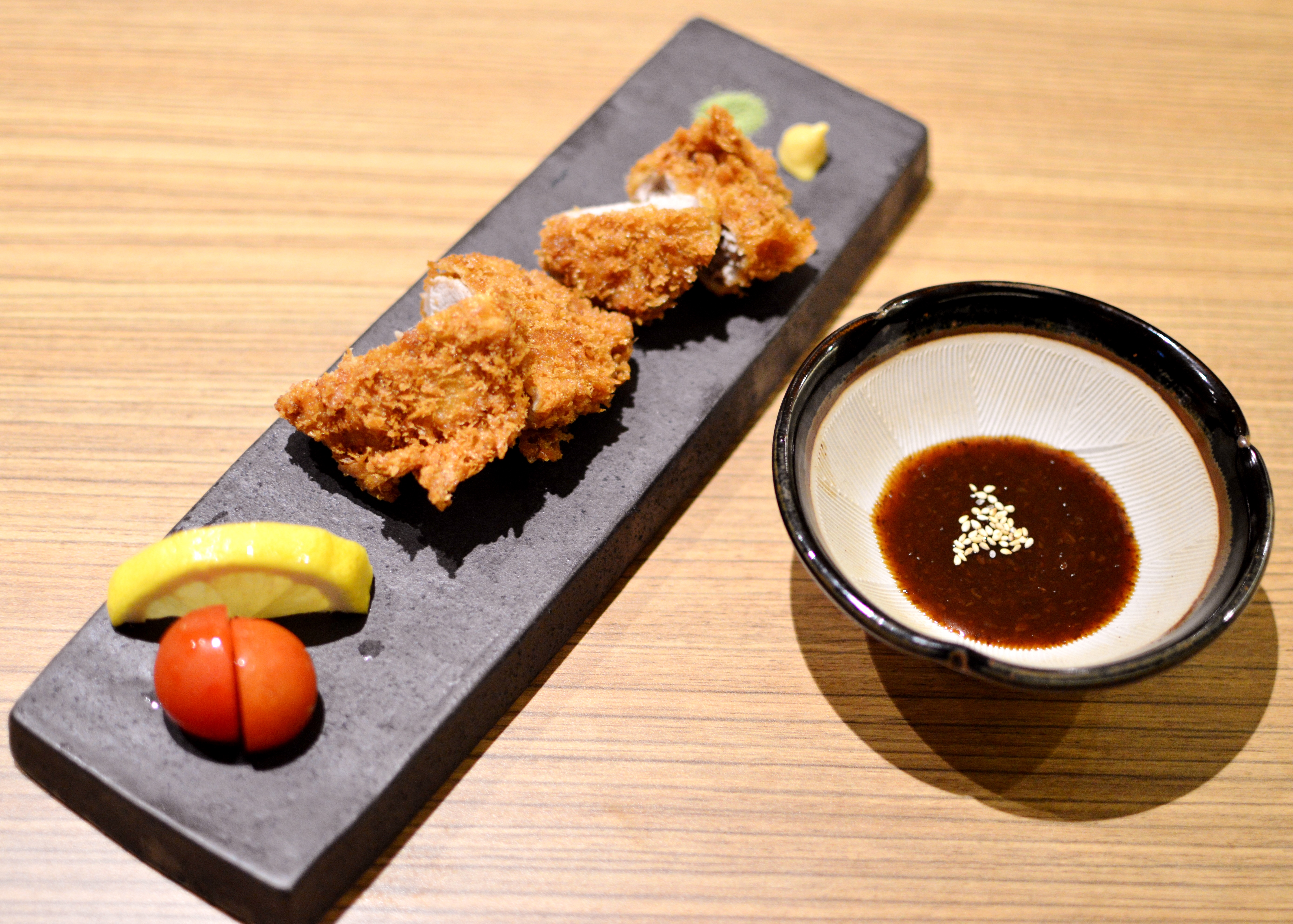 Asari Sakamushi (littleneck clams steamed in sake) is quite subtle in flavour profile, which sensibly does not muddle the flavour of the main ingredient. Salmon teriyaki with vegetables, shimeji and salmon roe is inadvertently overshadowed by one of the most stunning plates I have seen. The black centre and gold rim feature the colours of the components brilliantly, so outshining that was always going to be difficult. Crumbed pork is accompanied by Matcha salt (finely ground green tea powder with salt) and a particularly well-balanced katsu sauce.